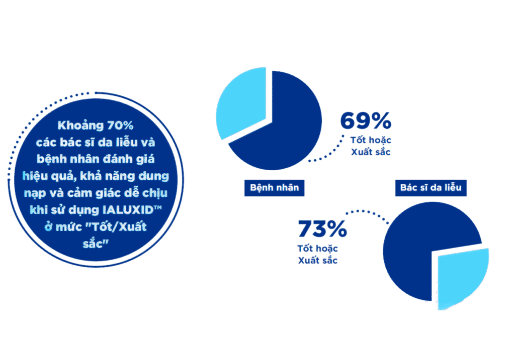 Khoảng 70% các bác sĩ da liễu và bệnh nhân đánh giá hiệu quả, khả năng dung nạp và cảm giác dễ chịu khi sử dụng IALUXID™ ở mức “Tốt/Xuất sắc”