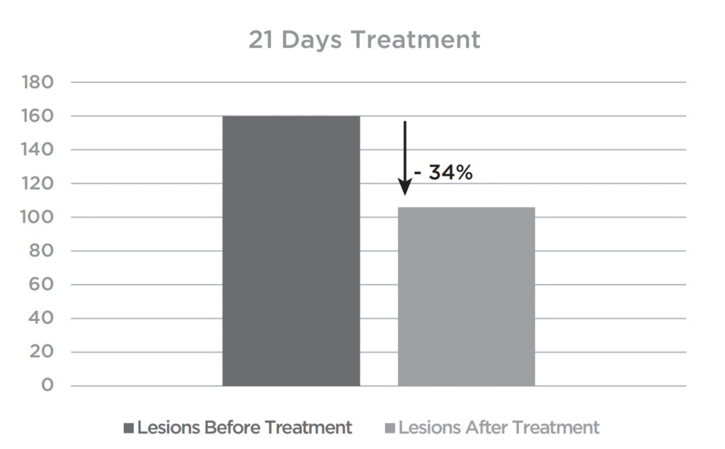 Sau 21 ngày điều trị bằng gel IALUXID™, số lượng tổn thương do U mềm lây đã giảm 34% ở các bệnh nhân